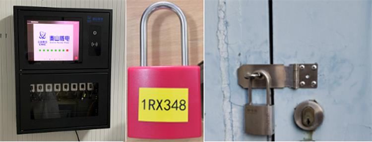 The red/orange door key in the radiation control area of Qin No. 2 Factory and the border door key in the control area still continue the traditional management mode: the mechanical key is stored in the entrance duty room and managed by the duty officer, and paper records are filled in when there is a loan or return.
